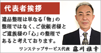 真心の遺品整理ワンステップサービスの代表 藤川です。