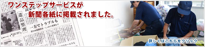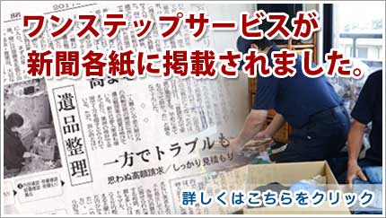 遺品整理の事業名である「ワンステップサービス」とは「ワンステップ One Step= 一歩先」・「ワン One= 唯一の」をテーマとして、業務に対して創意工夫し努力を惜しまず、常に「一歩先・唯一のサービス」をご提供させて頂くという思いを込めて、事業所名を「ワンステップサービス」とさせて頂きました。