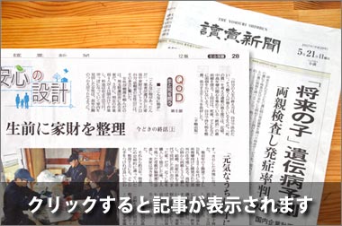 読売新聞の「安心の設計」とコラムにて当社をご紹介頂きました。遺品整理ではなく生前に家財を整理する作業を通じて記者の方からのご質問にお答えさせていただきました。