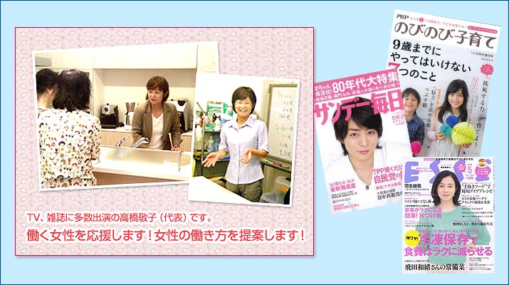 ワンステップサービスには、テレビや雑誌に多数出演しているのハウスクリーニング士・整理収納清掃(3S)コーディネーターの高橋敬子が在籍しています。